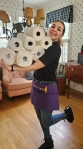 Chloe with cleaning supplies