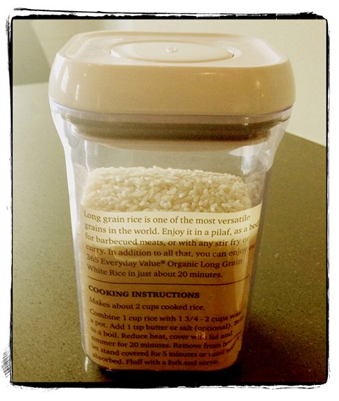 Cut off the name, expiration date, directions or any other information you need from the package and store it inside the container with the goods. See through containers (as shown above) are the most helpful for this technique. This way you can see it!